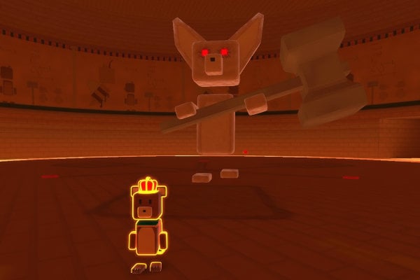 Описание: Этот противник напоминает гигантское существо, похожее на фенека, с горящими красными глазами и огромным молотом в руке. Он отлично вписывается в эстетику пустынной гробницы.